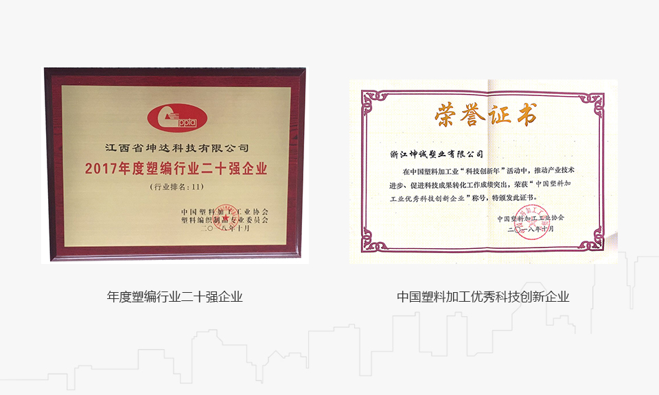 坤達(dá)集團(tuán)始創(chuàng)于2003年,是一個集技術(shù)研發(fā)、品牌運(yùn)營、規(guī)模化生產(chǎn)的塑編包裝產(chǎn)業(yè)鏈企業(yè)。旗下三大生產(chǎn)基地為浙江坤誠塑業(yè)有限公司、江西省坤達(dá)科技有限公司和江蘇坤達(dá)塑業(yè)有限公司,綜合實力榮登中國塑編行業(yè)十強(qiáng)企業(yè),其中浙江坤誠塑業(yè)有限公司獲評“國家高新技術(shù)企業(yè)”、“中國科技創(chuàng)新新銳企業(yè)”、“浙江塑料包裝企業(yè)研究開發(fā)中心”、“浙江省智能工廠(數(shù)字化車間)”、“浙江制造”團(tuán)體標(biāo)準(zhǔn)起草單位、“溫州市工業(yè)互聯(lián)網(wǎng)平臺”、“溫州市兩化融合試點企業(yè)”等榮譽(yù)稱號。